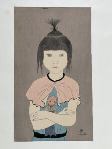 弊社所蔵作品紹介⑯ 藤田嗣治 『人形を抱く少女』 木版画販売 藤田嗣治作品買取強化中